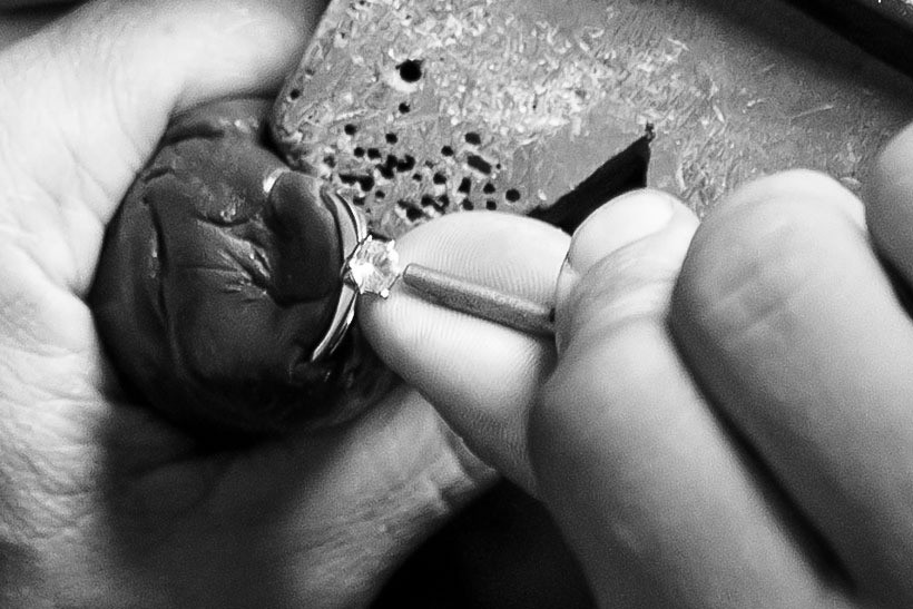 Questo metodo non solo fissa la pietra in modo sicuro, ma permette anche una maggiore esposizione della pietra alla luce, esaltandone la brillantezza e la visibilità. Non a caso è largamente utilizzato per gli anelli di fidanzamento e per i solitari.