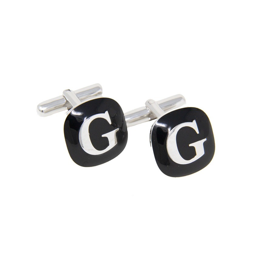 Gemelli dorati squadrati smaltati con iniziale