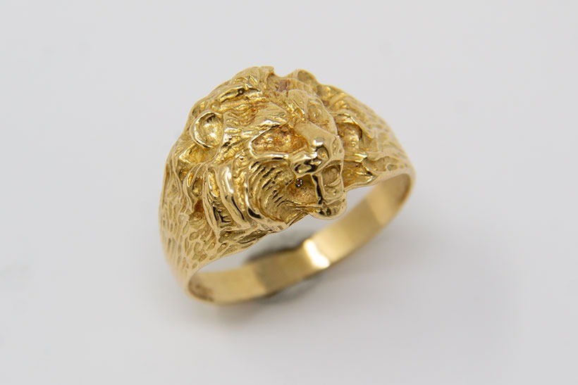 Anello con testa di leone cesellata