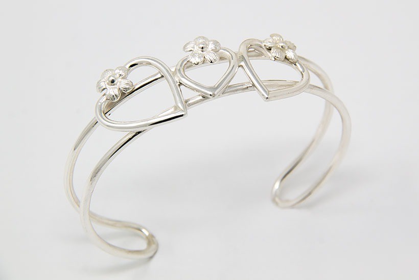 Oppure perchè non scegliere un bracciale rigido? Ad esempio, questo bracciale in argento con dettagli floreali di nostra creazione è stato disegnato per essere un vero e proprio emblema di femminilità e raffinatezza.