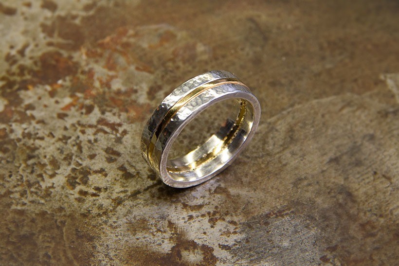 Le creazioni custom sono sempre le più apprezzate: permettono di creare un gioiello pensato proprio per chi lo riceverà. Come questo anello personalizzato in argento martellato unito ad un sottile filo d'oro: semplice ma unico. Una creazione personalizzata realizzata nella nostra bottega per un nostro cliente, come molte altre che ogni giorno realizziamo.