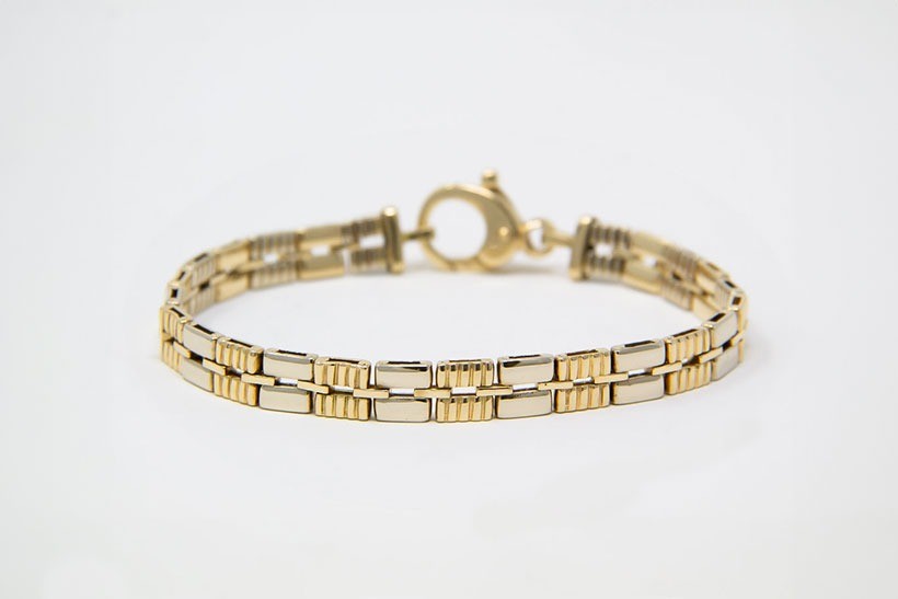 Che si tratti di un bracciale più semplice e minimalista o di un design più audace e decorato, ogni pezzo realizzato nella nostra bottega orafa è pensato per sottolineare la personalità unica di chi lo indossa, rendendolo un regalo d’inestimabile valore. Come ad esempio questo bracciale in oro giallo e bianco per lui: un tocco di eleganza senza tempo. Questo bracciale è reversibile, presentando una parte liscia e una striata. Un dono per Natale 2023 che vorrà indossare ogni giorno.