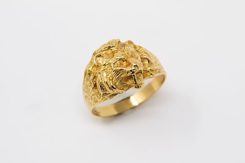 Anello "a cera persa" in oro giallo con elaborata incisione