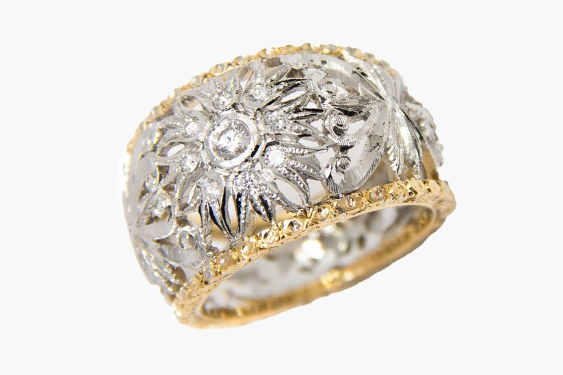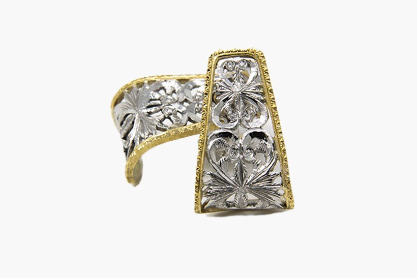 Considerata una delle espressioni più distintive dell'oreficeria fiorentina, questa tecnica è famosa per la sua attenzione ai dettagli e e per l’alternanza di pieni e vuoti, che dona ai gioielli una leggerezza unica, esaltandone la raffinatezza attraverso giochi di luce e ombra.